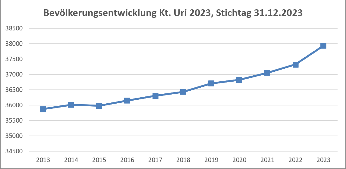 im Jahr 2023 rund 37'900 Einwohner. (Quellen: Bundesamt für Statistik und Kanton Uri)