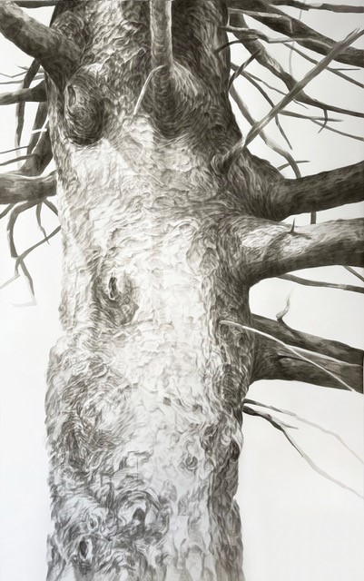 «Der detailreiche Stamm wirkt sehr realistisch – oder vielleicht ist der Begriff ‹körperlich› treffender», so Lea Achermann. Mit seiner körperlichen Präsenz werde der Stamm zum Gegenüber und löse einen haptischen Reiz aus. «Die langsame Malweise entspricht einem sorgfältigen Abtasten der ganzen Oberfläche. Ein ungewohnter Aufmerksamkeitsfokus, der jedem Quadratzentimeter Zeit widmet.» Diese Verlangsamung der Zeit sei der Versuch, in die Zeitsphäre des Baumes einzutreten, die nicht in Jahrzehnten sondern Jahrhunderten bemessen werde. Die portraitierte Fichte steht übrigens allein – mit einzigartiger Weitsicht – oberhalb von Schwandenberg in Attinghausen. Die in Altdorf geborene Lea Achermann wurde unter anderem schon mit dem Urner Werkjahr ausgezeichnet. Ihre Werke wurden auch für die kantonale Kunstsammlung angekauft.