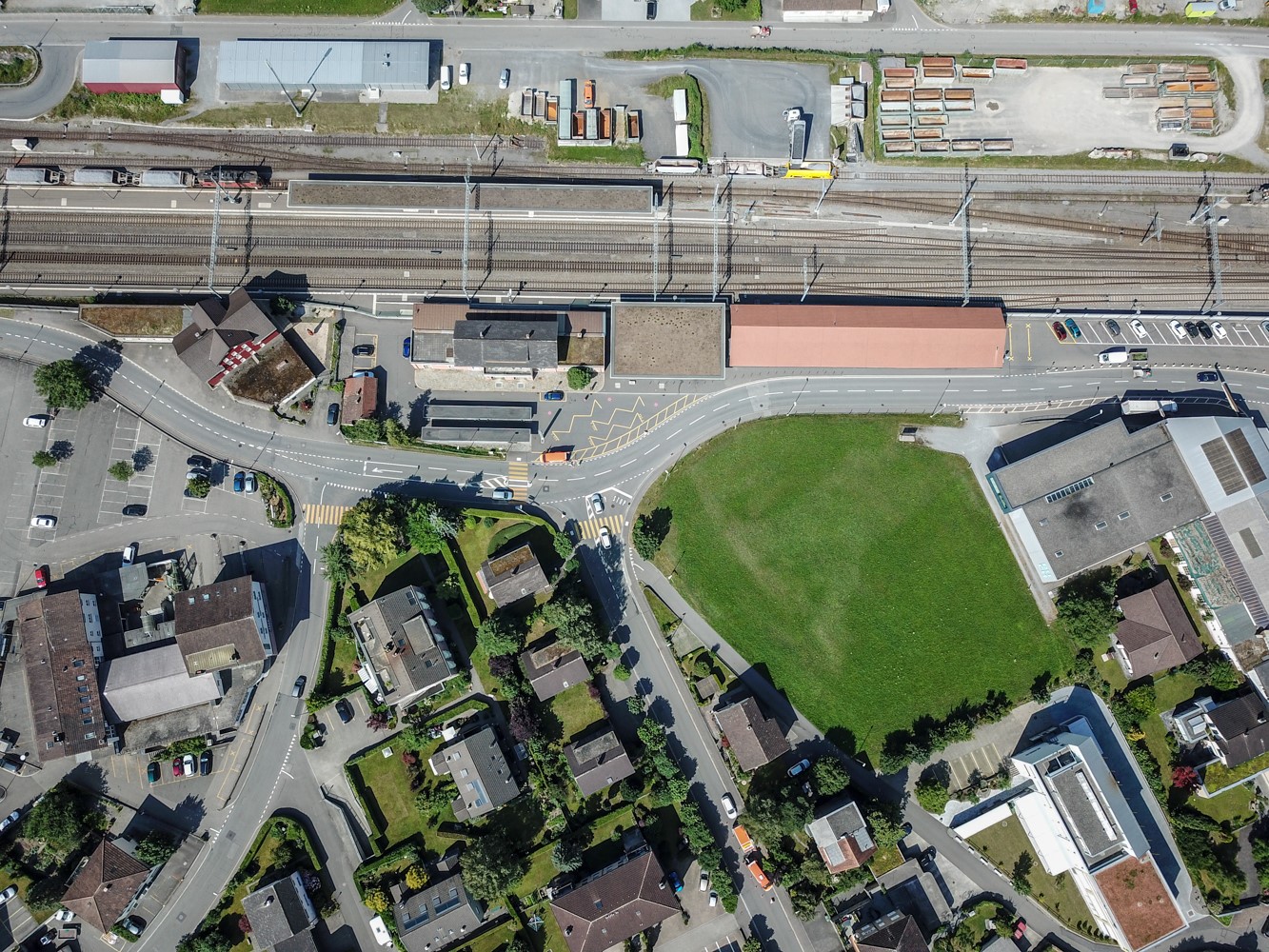 Luftbild vom Kantonsbahnhof Altdorf, Uri