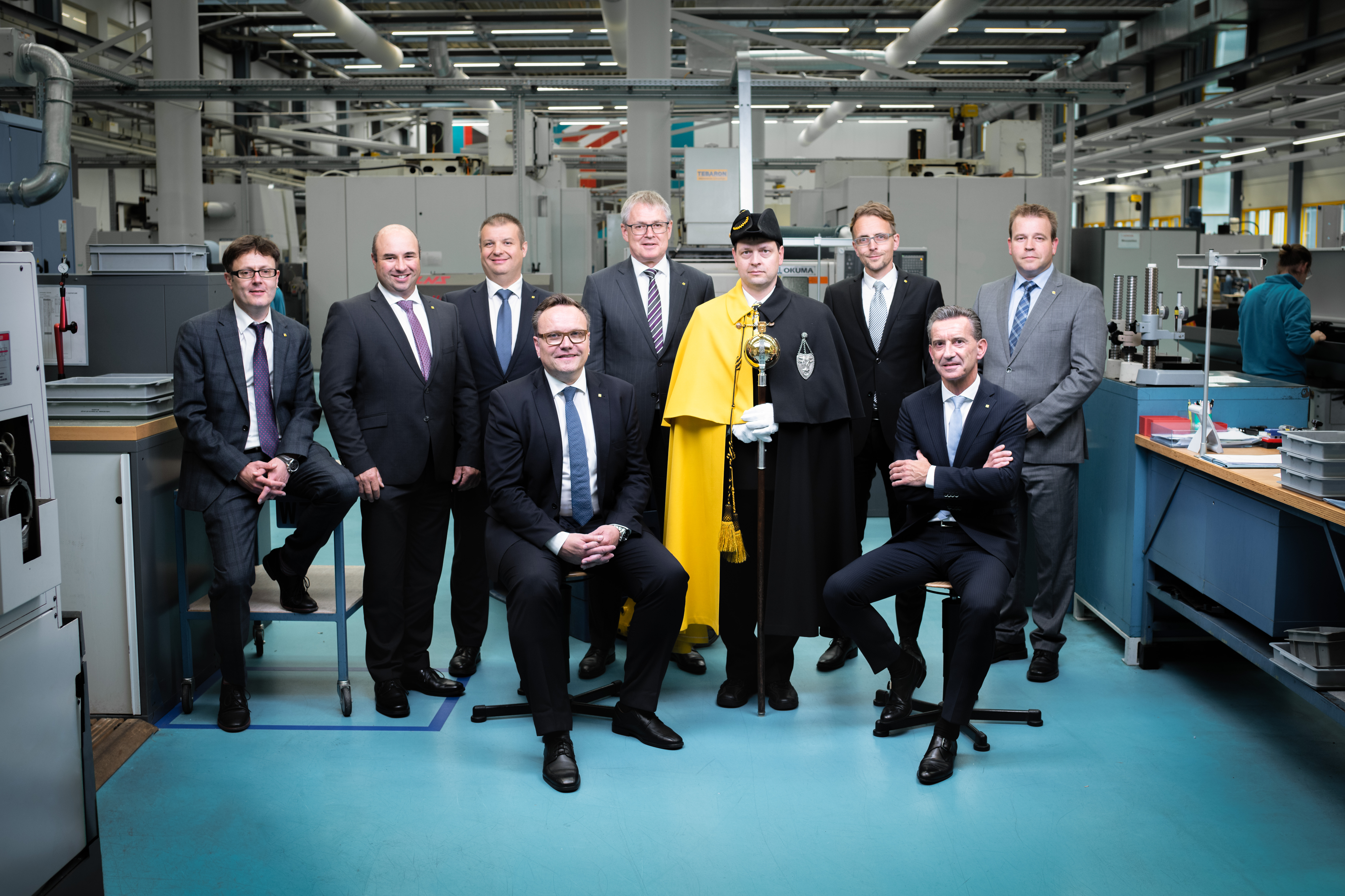 Foto des Urner Regierungsrats in den Räumlichkeiten der Dätwyler AG Schattdorf im Juni 2020. Das Faltblatt des Regierungsrats 2020-2022 umfasst auch die Porträts und die wichtigsten biografischen Angaben zu den Mitgliedern der Urner Regierung. Foto: Valentin Luthiger