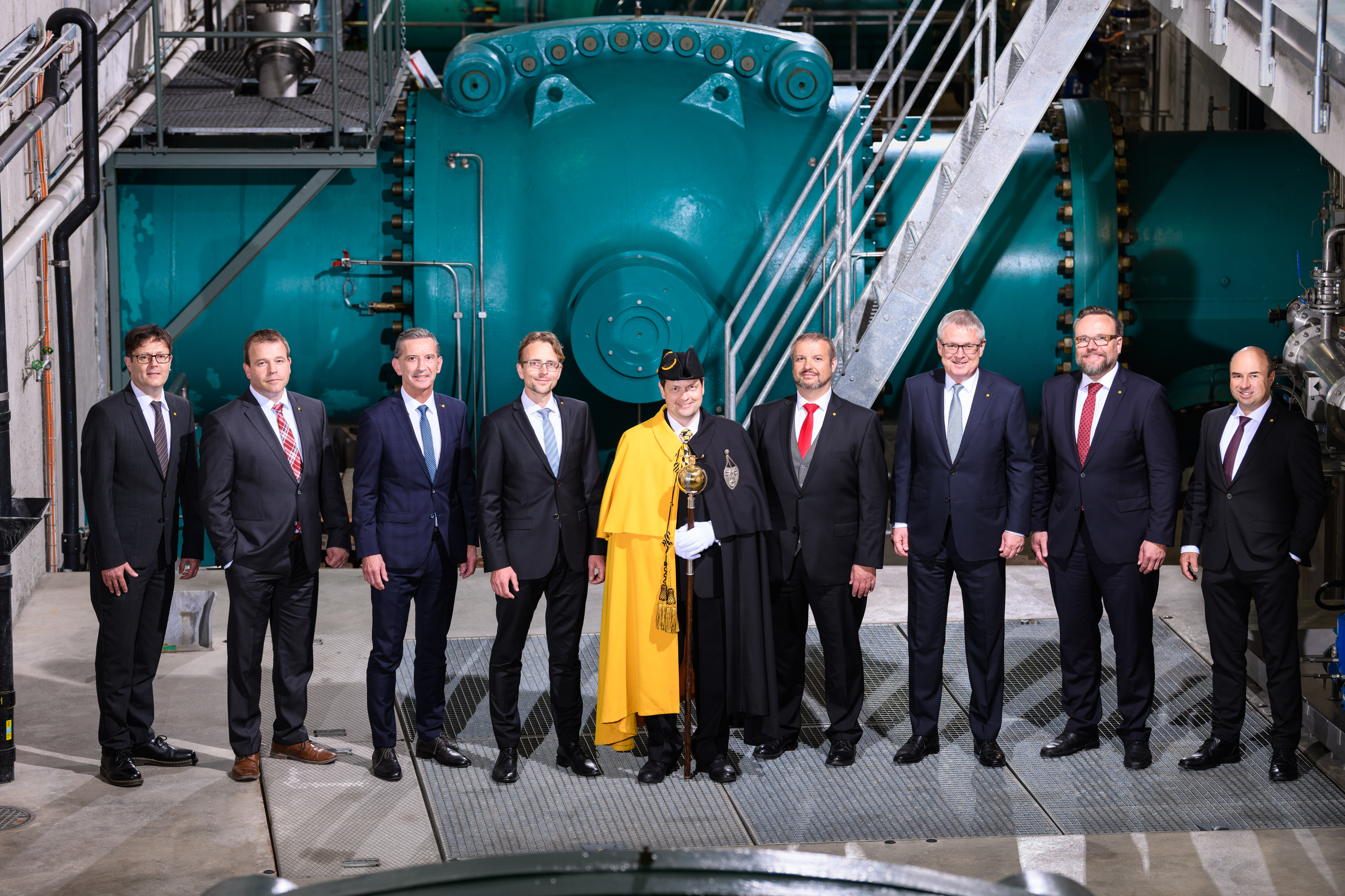 Foto des Urner Regierungsrats in den Räumlichkeiten des Kraftwerks Amsteg im Juni 2022. Das Faltblatt des Regierungsrats 2022-2024 umfasst auch die Porträts und die wichtigsten biografischen Angaben zu den Mitgliedern der Urner Regierung. Fotos: Valentin Luthiger